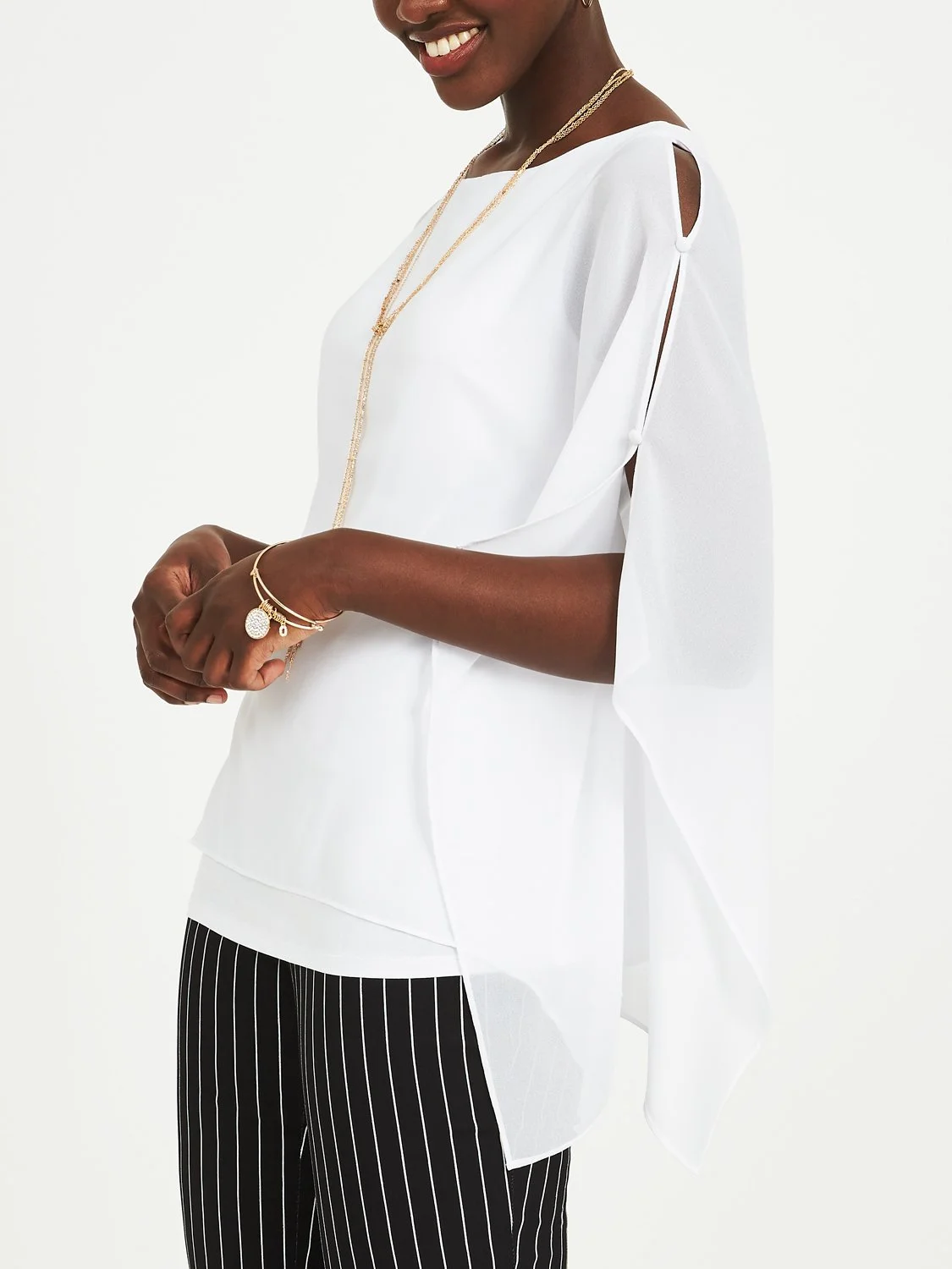 If you’re a contemporary kinda gal, refresh your Summer wardrobe with a white trendy blouse. Choose from an array of clean cut, lightweight blouses made in luxe warm-weather fabrics that can seamlessly transition from day to night. Wear over a cropped light wash denim and pair with slides for your daytime look, and swap for pumps, red lips and gold hoops once the sun goes down.